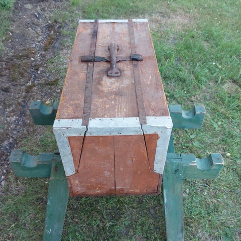 Vanha, puinen säilytysarkku / laatikko / työkalupakki, tai vastaava. Kunto ikäisekseen kohtalainen.