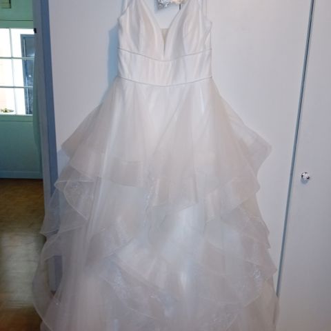 Zazabella outlet myymälästä ostettu mekko. Käyttämätön, kun löysin itselleni toisenlaisen mekon. Normaali mekon hinta oli joku 800-900 e. Ostin itse alennuksella. Myyn 300 e, saa tarjota myös. Vannehameen myyn myös jos on tarve erikseen 40 e. Olen 176 cm pitkä ja korot sopii tähän hameeseen.