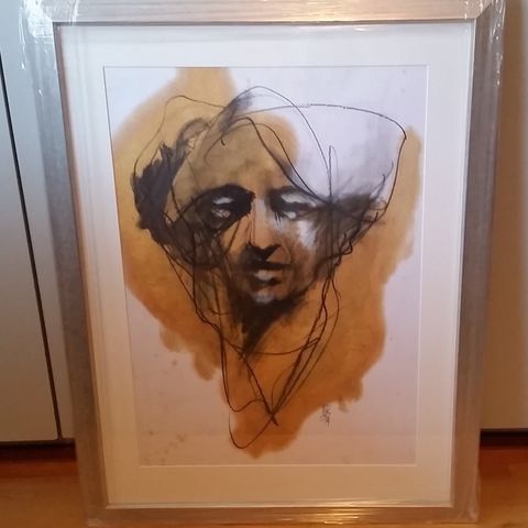 Helge Riskula väriliitu mitat kehysten päältä korkeus n.51cm leveys n.67cm kuva-aukko n.32x48cm