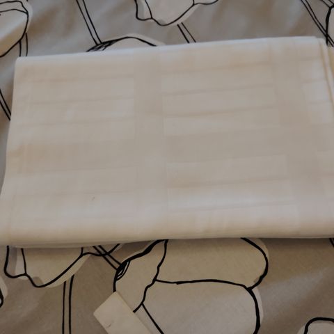 Kuvat 3 ja 4: pöytäliina samaa sarjaa kuin kuvien 3 ja 4 liinat, koko 79 cm x 79 cm. Käytetty vain pari kertaa, pesty, ehjä. Hinta 4 e.