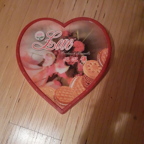 Kaksi valkoista sydämen muotoista peltirasiaa.