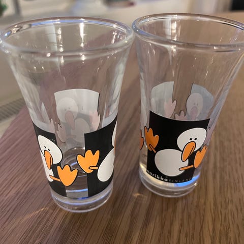 Aarikan Allu Ankka -snapsilasit. 4 kpl kerralla. Kuin uudet.