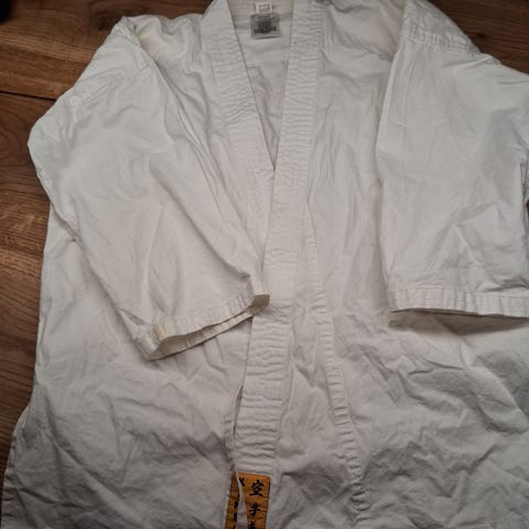 Karatetakki. Kerran pesty. Slim-malli. 160 cm. 12 Oz. Itselle pieni.