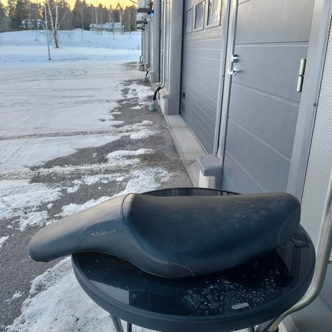 Todella hyvä kunto, helmi istua. Olisko ollu Sundowner merkkinen. Pyörä lähti vakiolla, ei tarvetta enää. Soveltuvuus ainakin 2000 alun vehkeisiin.