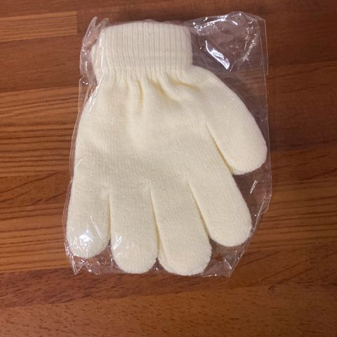 Yhteen kudottu hansikas vaikka lahjaksi kihlaparille. Kaksi kirjailtua sydäntä.