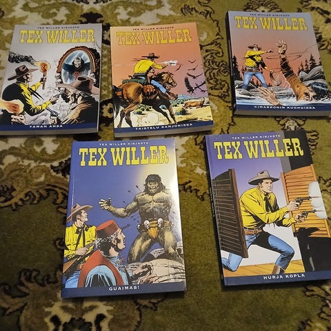 Myyn Tex Willer kirjasto sarjaa. 1-32,39,40,42,45,48,55,57,62,63 ja 65.Tarjousten perusteella.