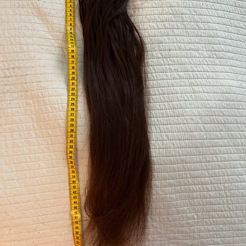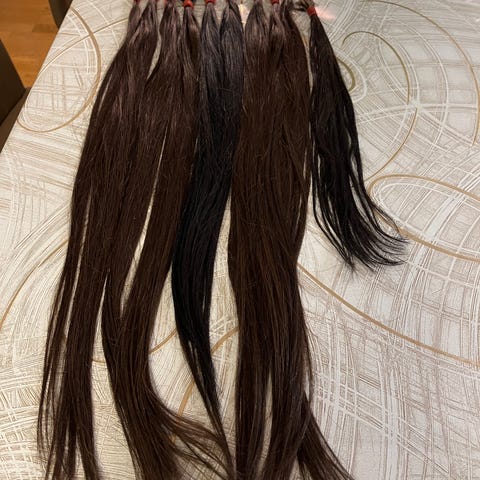 Todella laadukkaat 45cm kerran päässä olleet (pesty, teipinjäämät irrotettu ja asianmukaisesti huollettu). Väri on hiukan lilaan taittava savuinen silverblond. (Näyttää kuvassa tummemmalta) Hius on vahvaa, huippukuntoista ja kiiltävää eikä katkeile. Näistä on iloa vuosiksi ja kestävät pitkään. Vaihdoin väriä joten ylimääräiset. Hius on slaavihiusta joten siihen voi käyttää tavallisia tuotteita kunhan kosteuttavia ja voi värjätä. 21 paria eli koko päähän.
