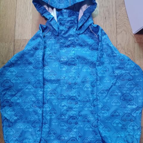 Sadesään ehdoton setti: sadetakki + sadehousut + sadehattu + saappaat + sadehanskat ym., koko 120 cm. Tyylikäs ja söpö malli, sopii sekä tytöille että pojille. Koko setti on ollut vain vähän käytössä ja on hyvässä kunnossa.