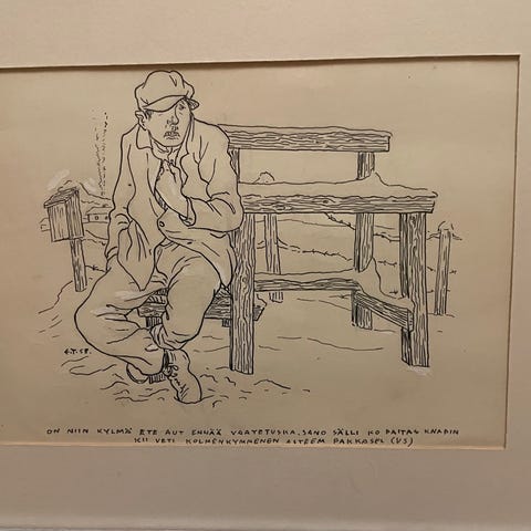 Erkki Tanttu I 4/9 vedos mittoja kehysten päältä korkeus n.40,5cm leveys n.30,5cm kuva-ala korkeus n.20cm leveys n.15cm