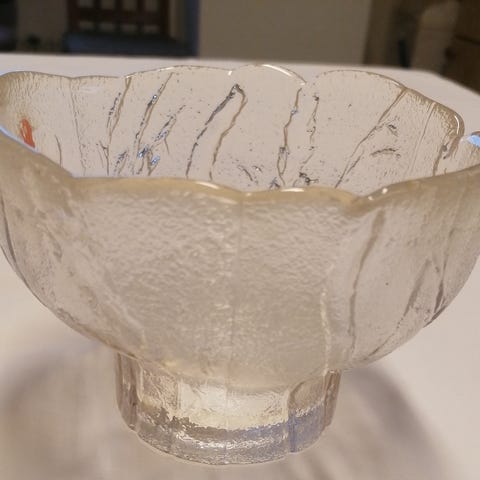 Humppilan lasikulho. Halkaisija 25,5 cm, korkeus 8 cm. Hyvässä kunnossa.