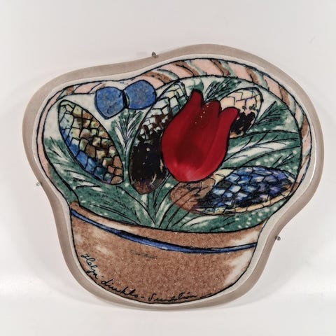 Heljä Liukko-Sundströmin suunnittelema Tulppaanit-seinäkoriste, kork. 27cm, lev. 32cm