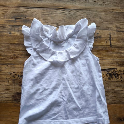 Palomino merkkinen ihanan ohut puuvillainen toppi koossa 110. Ehjä, siisti ja tuoksuton. Hyvä hellepaita. Meillä ei lemmikkejä eikä sisäilmaongelmia.