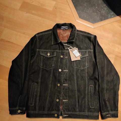 Myydään vuorellinen musta "farkkutakki", Hyväkuntoinen.