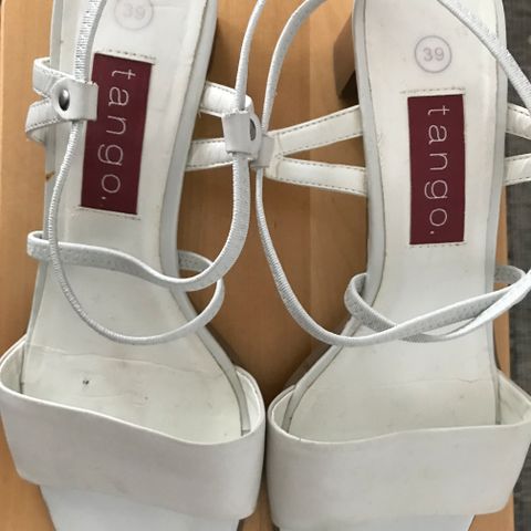 Hyväkuntoiset, muutaman kerran käytetyt Tango-merkkiset juhlakengät. Nahkaa sisältä ja päältä. Väri on kermanvaalea. Koko 38, sisäpituus noin 25 senttiä.