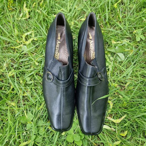 Muutaman kerran käytetyt Aaltosen kotimaiset korkokengät. Vuori ja päällinen mustaa nahkaa. Koko 38, sisäpituus noin 25 senttiä.