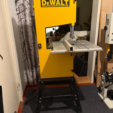 Hyvä kuntoinen Säteissaha jalustalla ,pyörät alla helppo liikutella.