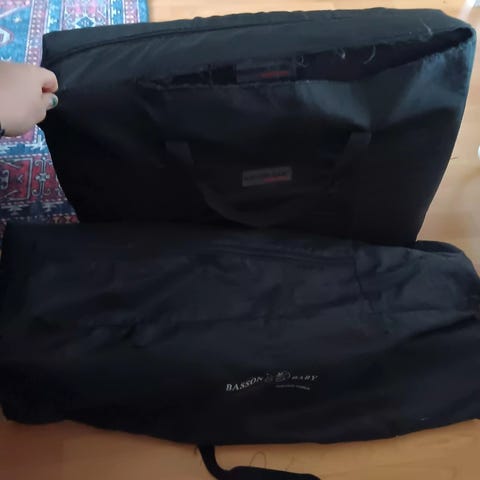 Taitettava, tukeva matkasänky ja patja.
