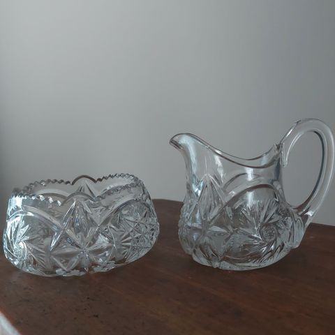 Myydään hyvässä kunnossa olevat Riihimäen lasin kermakko, korkeus n. 8 cm, halkaisija n. 9 cm ja sokerikko, korkeus 8 cm, halkaisija 8 cm.