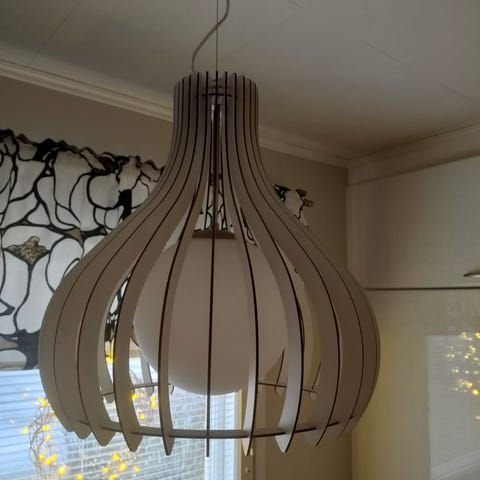 Hayn iso Sinker-kattovalaisin. Korkeus n. 40cm, halkaisija alhaalta n. 40cm ja ylhäältä n. 20cm. Johto on varsin pitkä.