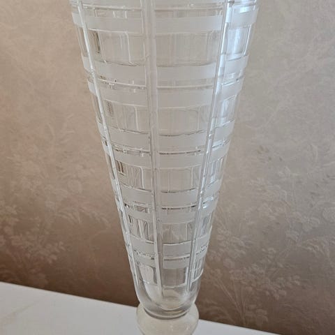 Kiva jalallinen maljakko korkeus 28 cm, väri kaunis roosa, sopii hyvin esim, ristiäis-kattauksiin. On virheetön ja melko paksua lasia joten ei mene ihan helposti rikki.