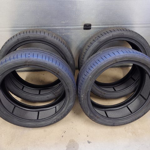 Tilasin itselle väärän kokoiset. Piti olla 40profiili. Nämä ei oikein mahdu uudehkoon Volvo XC90 autoon. Yksi rengas käytetty vanteella ja todettu turhan ahtaaksi ko. autoon. Lähetän ilman lisäkuluja vastaanottajan maksaessa rahdin. Kulkeutuu pääkaupunkiseudulle sekä Mäntyharjun suuntaan myös minun tuomana.