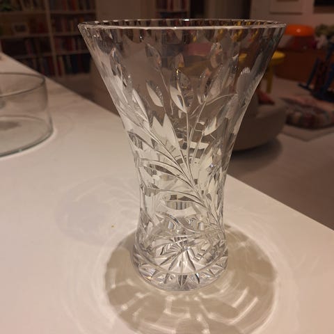 Myydään riihimäenlasi Aimo Okkolin selleri maljakko. Täysin ehjä,ei rikkinäisiä reunoja,ei irronneita palasia eikä mitään naarmuja.
