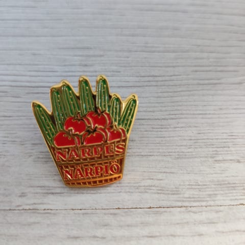 Myydään muovinen oranssi veturipinssi. Hinta 1 euro.