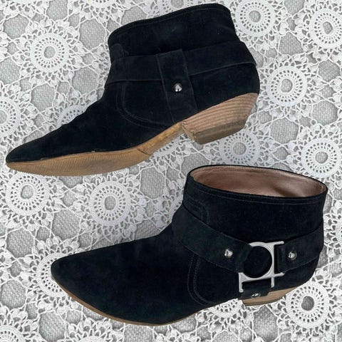Nahassa on ihan kevyttä taitetta ja koroissa kolhuja kuten kuvista näkyy, mutta muuten nilkkurit ovat erittäin hyvässä kunnossa. Pohjiin olen suutarilla laitattanut kumipohjat, joten ne ovat nyt pitävämmät ja kestävämmät.