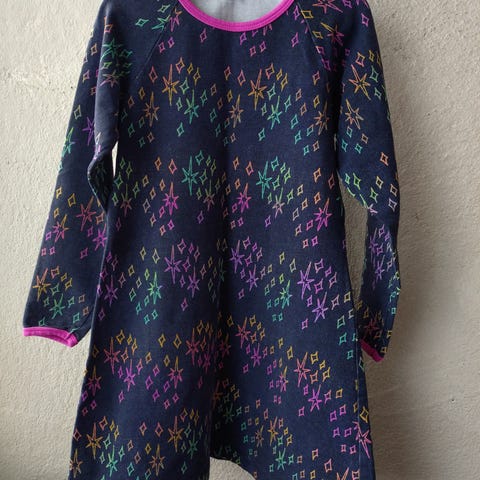 Vähällä käytöllä ollut, erittäin siisti, Taimi kettujemma, timanttitunika koko 116/122. Taitettavat hihat, joustotrikoo. Mekon selkäpuolella ja hihojen sisällä muutama väritahra (lähtee varmaan sappisaippualla ja auringossa!) Halpa hinta tahrojen vuoksi.