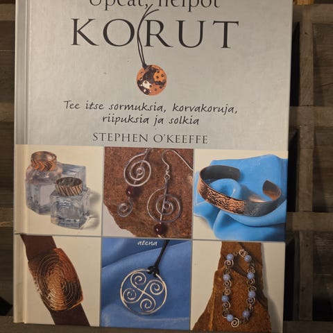 Englanninkielinen kirja, jossa näytetään yksityiskohtaisesti vaihe vaiheelta metallisten korujen valmistusta ja tekniikkaa sekä tarvittavat työkalut.