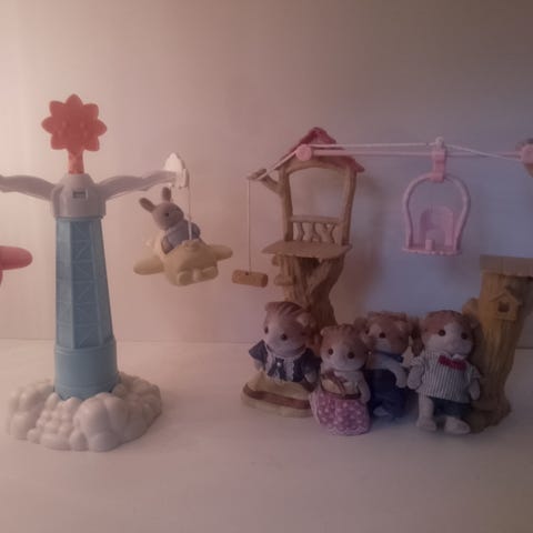 Myynnissä Sylvanian families vauvojen seikkailukaruselli. Karuselli pyörii, vaunut laskeutuu auringosta nostamalla. Kunto kuin uusi