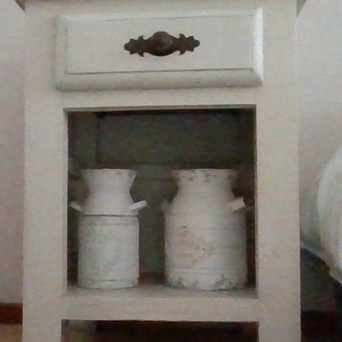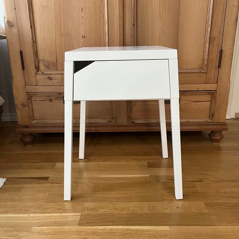 Hakusessa kuvanmukainen yöpöytä. Pöydän korkeus ja syvyys 40cm, leveys 45cm