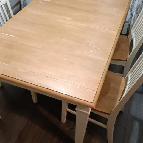 Huom: Pöydän pinnassa on kaksi kohtaa, joissa pieni haalistuma (katso kuva), mutta tämä ei vaikuta käyttöön.