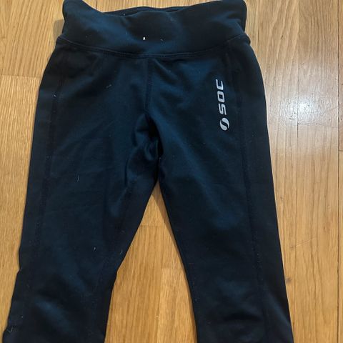 Kahdet Socin urheilutrikoot. Kirjavat ovat kokoa 146/152 ja mustat 158/164. Olleet meillä kuitenkin samaan aikaan käytössä. Mustissa lahkeissa takana heijastavaa kuviointia.