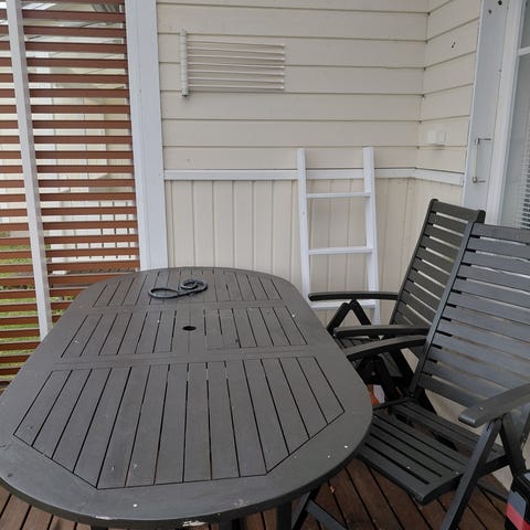Mallipoistossa Suvi Cafe -ruokapöytä on yhdistetty Suvi -malliston Aintwood tuolien kanssa. Säänkestävät kalusteet ovat hoitovapaita ja niiden laatu on ensiluokkaista ja kestävää. Suvi Aintwood -tuolit ovat pinottavia, mikä helpottaa talvisäilytystä, kun tuolit saa varastoitua pienempään tilaan.