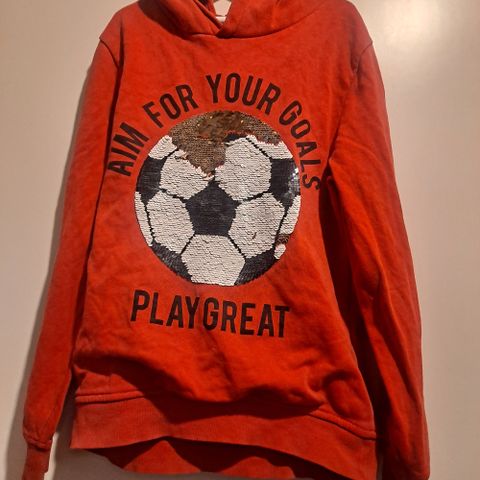 Jalkapallo teeppa. Koko:134/140. Hyväkuntoinen ja pehmeä. Nimikoitu kynällä paidan niskaan sisäpuolelle tussilla ja näkyy taakse läpi. Pesty hajusteettomasti.