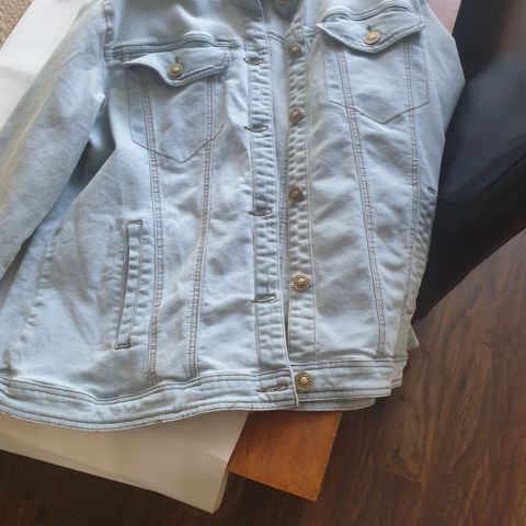 Myydään käyttämätön sininen farkkutakki, lojunut vuoden verran käyttämättömänä, pesty silloin kun ostettu.