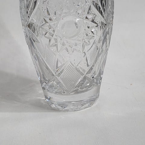 Vanha jalallinen kristallikulho. Sisäpinnassa näkyy kulumaa, mutta ei tunnu. Yhdestä jalasta puuttuu pala, mutta pysyy silti pystyssä eikä keiku. (näkyy kuvissa)