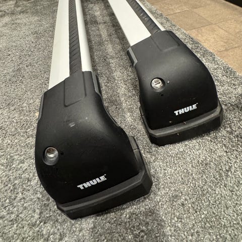Myydään hyväkuntoiset Thule WingBar Evo kattotelineet 2 kpl + Thule Rapid System 775 kiinnitys. Kokonaisleveys 131 cm.