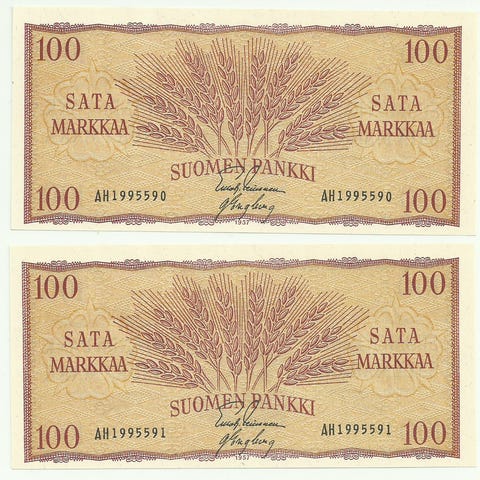 5mk 1939 2 kpl, 5 mk 1945, 100 mk 1957