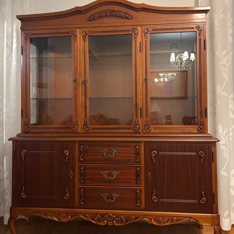 Kokopuinen Vanha vitriinikaappi ja lipasto