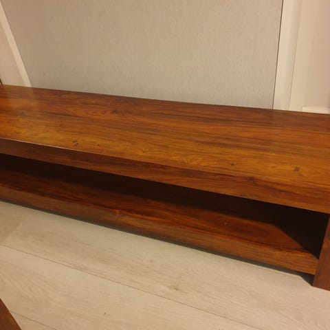 Tämä suurikokoinen, erittäin käytännöllinen senkki on valmistettu käsityönä akaasiapuusta, joka on kasvatettu Intian valtion kontrolloimalla plantaasilla. Myös takorautahelat on valmistettu käsityönä.