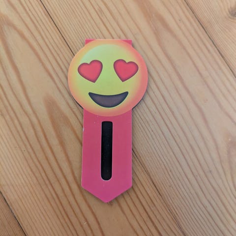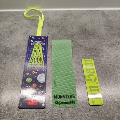 Takana on pieni, huomaamaton naarmu, joka on tullut varmaan kuljetuksessa. Kirjanmerkki on hyvässä kunnossa, en ole käyttänyt sitä.