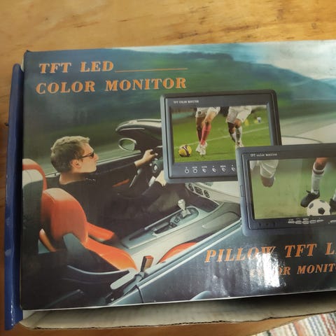 Myydään kuvassa näkyvät niskätukinäytöt 2kpl pois. Ei tarkempaa tietoa eikä ymmärrystä. Mukana on piuhat ja ohjaimet.