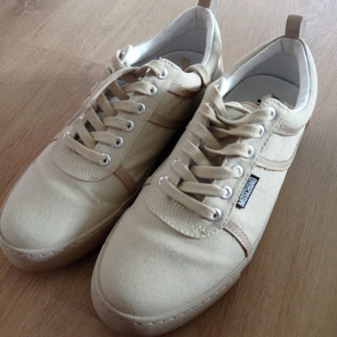 Pohjissa vähän jälkeä, muuten uudenveroiset. Koko on 42, sisämitta on 27,5 cm, päkiän leveys 8.5 cm.