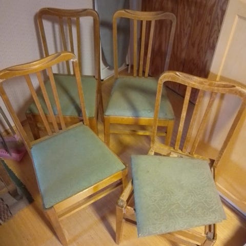 Kaksi kunnostettua koivu tuolia 30-luvulta. Istumakorkeus n. 47 cm.