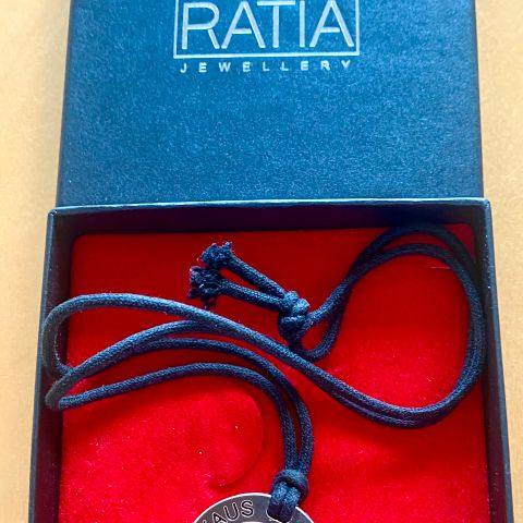 Ristomatti Ratian suunnittelema hopeinen (925) UTR, usko, toivo, rakkaus riipus paksulla käärmeketjulla ( yhteispaino n. 11 g. Riipuksen korkeus noin 3 cm, ketjun pituus noin 43 cm.