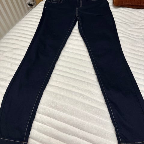 Puuvillaiset farkut, olleet muutaman kerran käytössä, 71% puuvillaa, loput polyester ja elastaani. Siistit, ei mtn tahroja, koirataloudessa olleet. Vyötärönympärys 84cm, lahkeen pituus n 80cm, koko pituus 110cm, lahkeen leveys alhaalta 16,5 cm. Hinta 5e ja mahd.postitus /nouto Saarijärvi-Husuaho