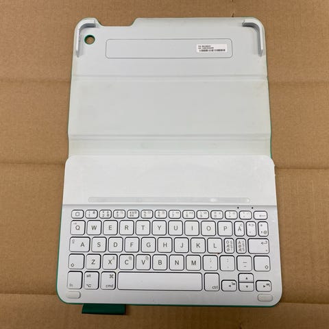 Vanhemmalle Apple iPad Air-tabletille langaton Bluetooth-näppäimistö. Voi toki käyttää langattomana näppiksenä myös muiden laitteiden kanssa. Akku ladattu ja testattu, toimii, mutta akun kestosta ei ole tietoa. Mukana ei tule USB-latausjohtoa.