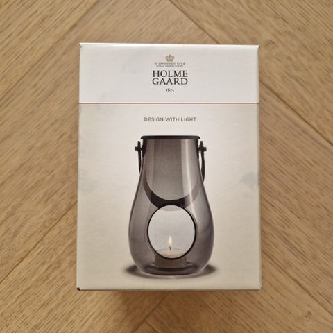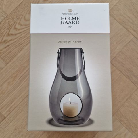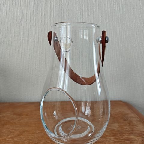 Kaunis ja tyylikäs suupuhallettu Holmegaardin kynttilälyhty. Nahkainen kantoripa ja metallinen irto kansi. Noin 30cm korkea ja leveys noin 18cm. Ehjä.